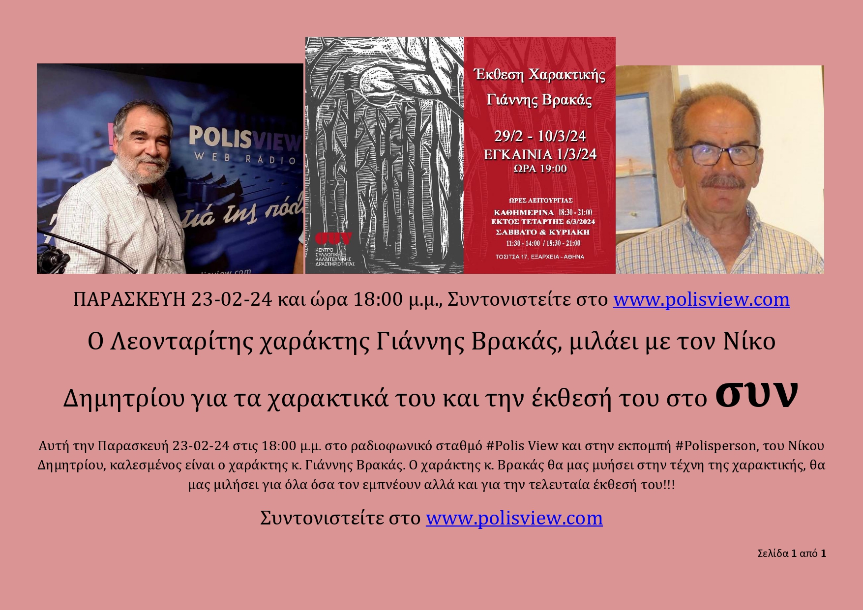 Ο Γιάννης Βρακάς μιλάει για την έκθεση με τα χαρακτικά του στον ραδιοφωνικό σταθμό www.polisview.com !!!